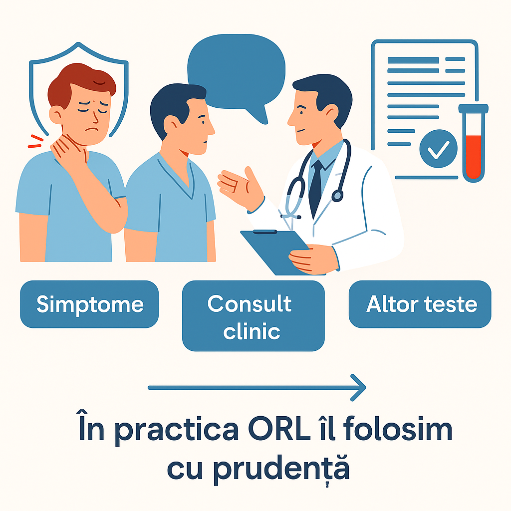 De aceea, în practica ORL îl folosim cu prudență și nu luăm decizii medicale doar în baza acestui rezultat.